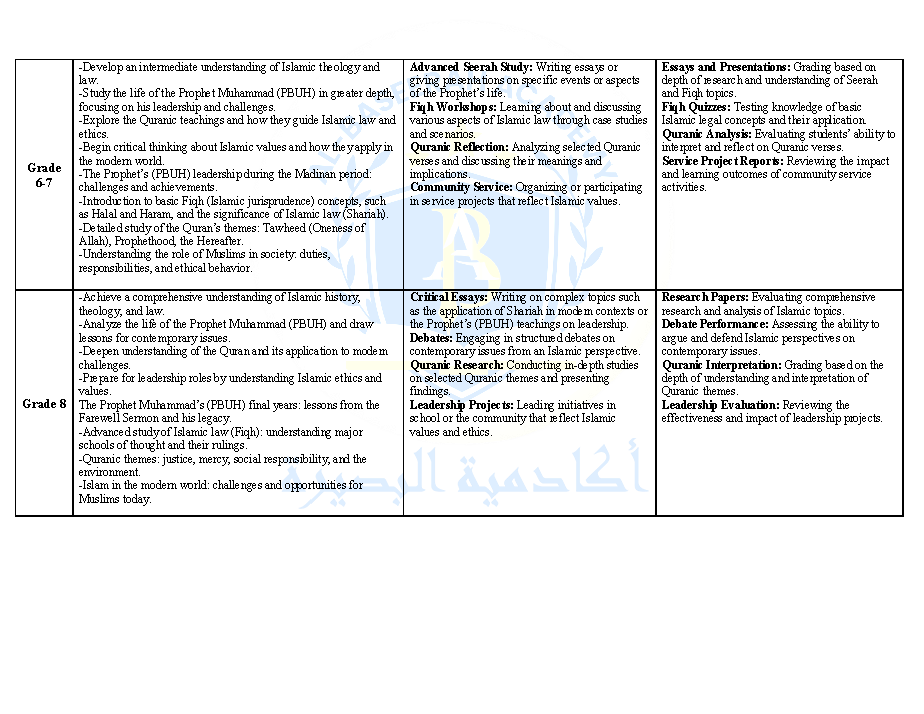 Curriculum – Islamic Studies & Seerah – Pre-K to Grade 8