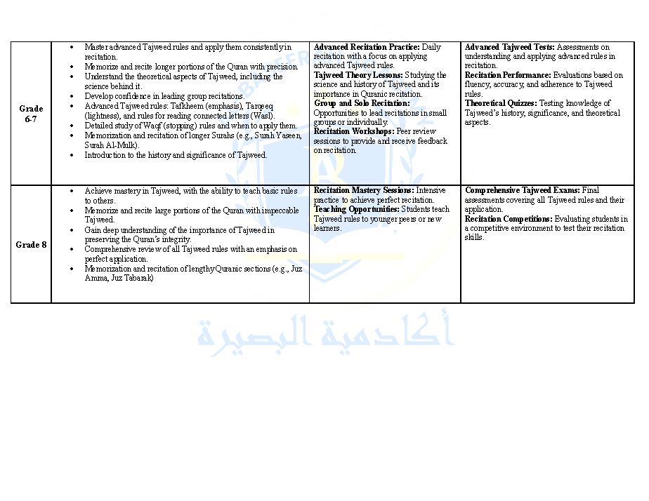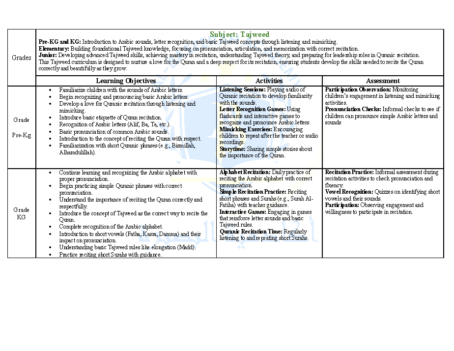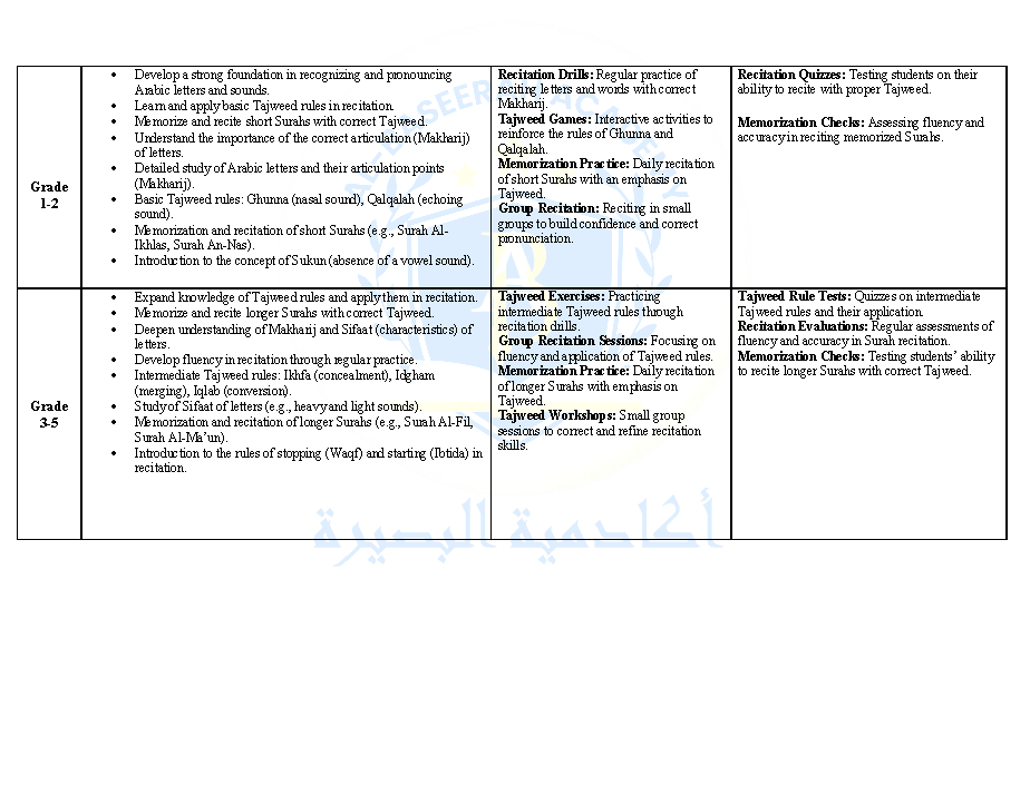 Curriculum – Tajweed – Pre-K to Grade 8
